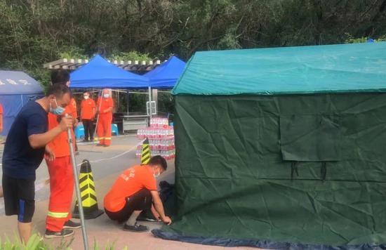 田村路街道在核酸检测点为医务人员搭建了帐篷