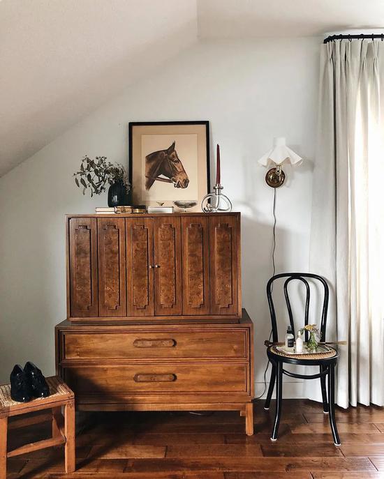 Lea每次购买新东西之前,都会努力节俭,热衷于收藏的她,经常从古董市场往家里搬家具,比如餐厅的柜子、波斯的古董地毯等等。同样她也会改造家里的旧家具,比如把前任主人的梳妆台剥离成原始的橡木结构,另加抽屉水槽,变成好看的洗手台。