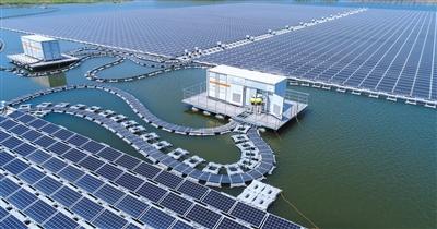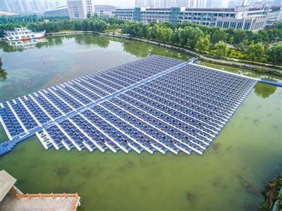 山东济宁100兆瓦水上漂浮领跑者光伏电站。本版图片/企业供图