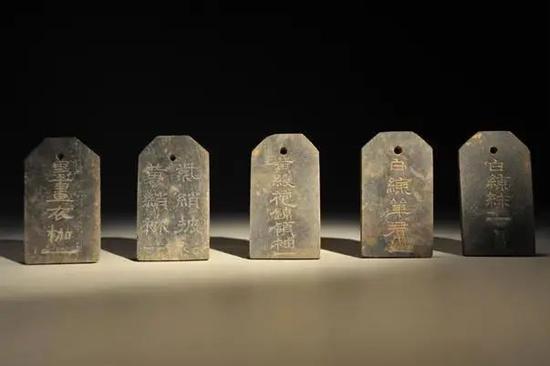 曹操高陵出土刻铭“黄绫袍锦领袖”石牌
