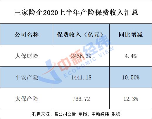 产险保费收入方面,上半年,人保财险、平安产险、太保产险三家产险公司相较2019年同期均实现正增长。其中,人保财险保费收入最多,为2456.39亿,平安产险、太保产险保费增速均实现两位数增长,增速分别为10.5%、12.3%。