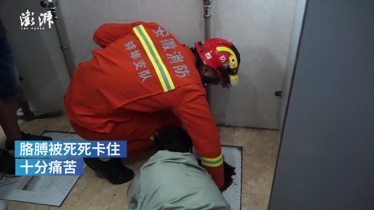 9月2日,安徽蚌埠。一高校宿舍楼内,一保洁员伸手去捡掉落在便池下水道里的东西,胳膊被卡住。消防员利用工具小心破拆,成功解困,保洁员除轻微擦伤外,并无大碍。