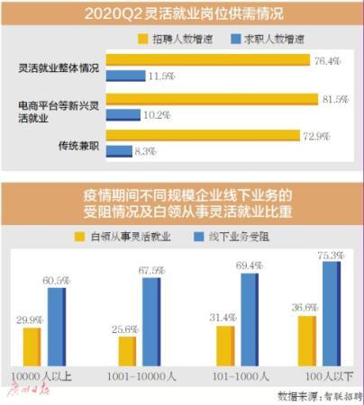 员工与雇主间的关系开始打破“常规格子”,形成新的供需缺口。根据智联招聘大数据显示,灵活用工招聘需求大增,其中今年二季度灵活就业招聘需求增长76.4%。
