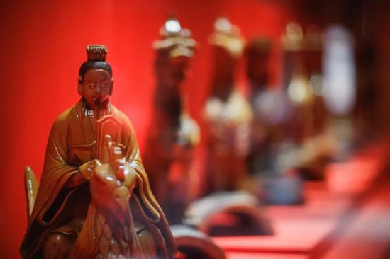 紫禁城里的著名“小兽”,也从屋脊上“搬到”了展厅里。据正楼展厅策展人张杰介绍,“这套小兽是康熙三十四年(1695)重建太和殿时的原件,每件小兽都有美好的象征寓意,尤其是最后一件——行什,只在太和殿出现,是个孤例,也是太和殿建筑无上等级的体现。太和殿初建时名为奉天殿,后多次烧毁。康熙十八年(1679)二月初三日再次焚毁,由于良材难求,取木艰辛,这次工程备料用了十余年;直到康熙三十四年开工,两年后告竣,才有了今日的形制。”