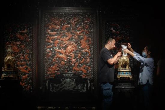 600年的历史文化,也让中华民族在制作工艺中发挥得淋漓尽致的劳动智慧在此汇集。策展组成员刘梦雨介绍,“将在正楼展厅宁寿宫区展出的漆纱,制作于1773年,这是它在二百多年来首度与公众见面,因其脆弱的表面状况,以后恐怕也不容易再有机会公开展出。宁寿宫花园的内檐装修是公认的乾隆时期工艺巅峰水准,紫禁城内无出其右。而这件漆纱的工艺复杂程度与制作难度,即使在宁寿宫花园之中,也称得上数一数二。以今天的科学技术手段,仍然未能实现对其工艺的彻底理解,更难以原样复制。”