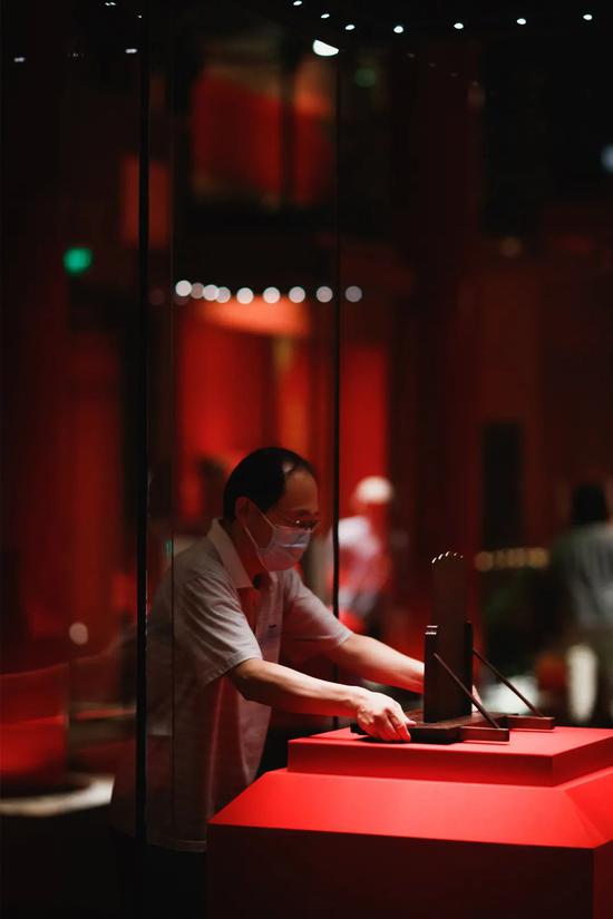展览开幕在即,布展工作正在紧张而有序地进行。不止是展品,本次展出的每一个细节,都经过了筹展组成员的反复确认和推敲,包括展台的距离、说明牌上的文字以及防止和固定文物时的小心翼翼等。