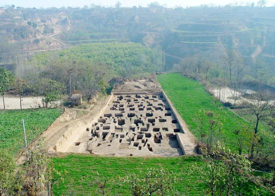 陶寺遗址1978年发现于山西省临汾市襄汾县陶寺村。40多年的考古发掘,揭示遗址面积近300万平方米。清理出宫城、下层贵族居住区、王陵区、祭天祭地礼制建筑区、仓储区、手工业作坊区、普通居民区等功能区域,发掘墓葬千余座,出土了彩绘龙盘、土鼓、鼍鼓、特磬、玉器、彩绘木器等精美文物。