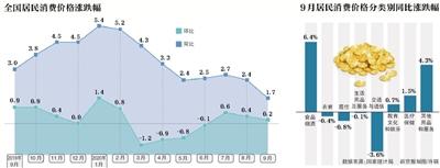 9月CPI同比上涨1.7%猪肉价格环比由涨转降 食品价格涨幅收窄是CPI回落的主要原因;专家:猪肉价已过顶峰期,四季度CPI或保持在“1”时代