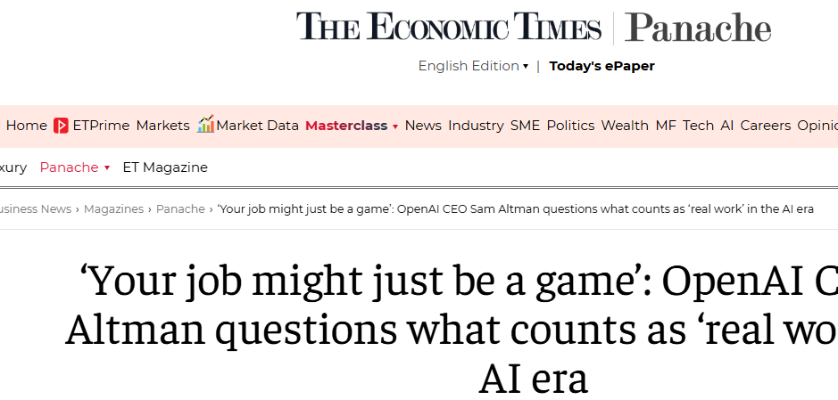 阿尔特曼将传统劳动,如务农,与现代的办公室工作进行了鲜明对比。他直言,如今大部分工作或许从最本真的意义上来说算不上“真正的”工作。