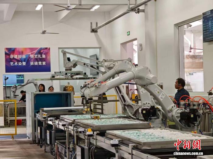科技赋能带来了显著的产业变革。每条生产线上的“智能工匠”工作量堪比5名工人,可替代30%的扎染工序,将生产效率提升6倍;染料利用率从60%跃升至92%,正品率高达98%,同时大幅降低废水排放,实现了经济效益与绿色发展的双赢。