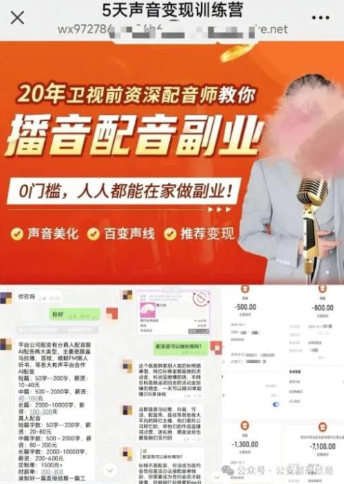 诈骗分子会在社交平台以及网络直播间中,发布投资理财课程、无门槛兼职、高薪赴境外工作等内容的视频。在获得受害人关注后,诈骗分子会在评论区或者直播弹幕中发布“想了解更多,私信联系客服”等评论,引诱受害人越过官方平台加入所谓的“投资指导群”“配音群”“兼职群”“课程群”,进而实施诈骗。这种引流手段更具有迷惑性,有些甚至会铺垫几个月的时间,当你放松警惕之后才实施诈骗。不要轻信社交平台中短视频发布的内容。