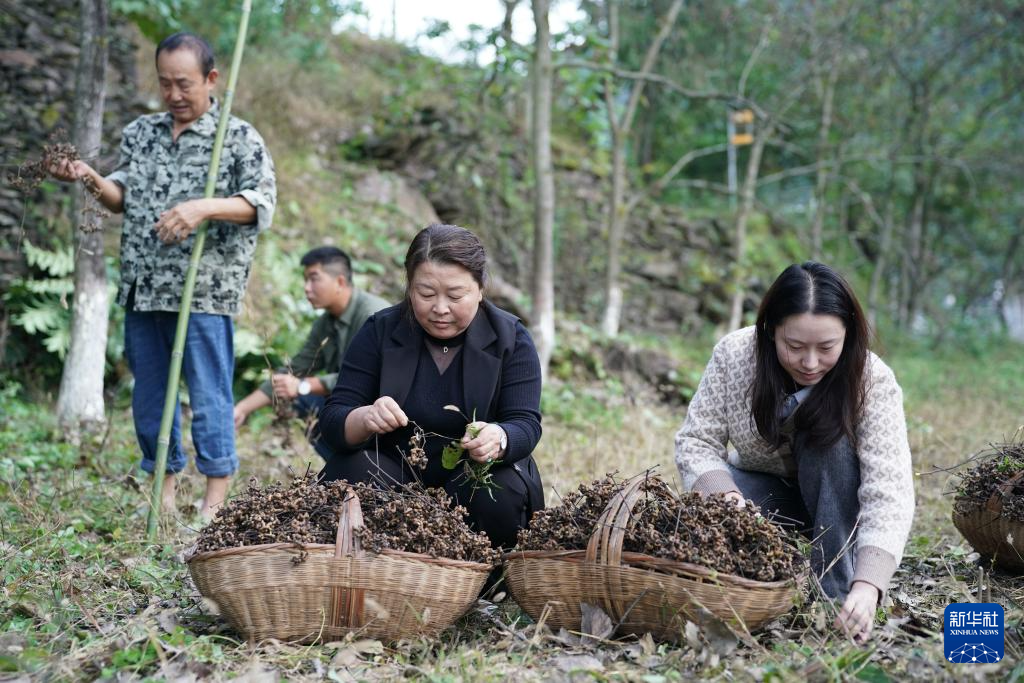 10月28日,果农在旬阳市神河镇王义沟社区拐枣种植基地采收拐枣。 眼下,“中国拐枣之乡”陕西旬阳市40万亩拐枣陆续成熟,拐枣林中、企业车间呈现出一派采收加工的繁忙景象。近年来,旬阳市将拐枣作为乡村振兴的农业首位产业进行培育壮大,建成拐枣“万亩镇”21个、“千亩村”30个,拐枣产量达12万吨,实现产值3.4亿元,带动8.5万农户稳定增收。 新华社记者 邵瑞 摄