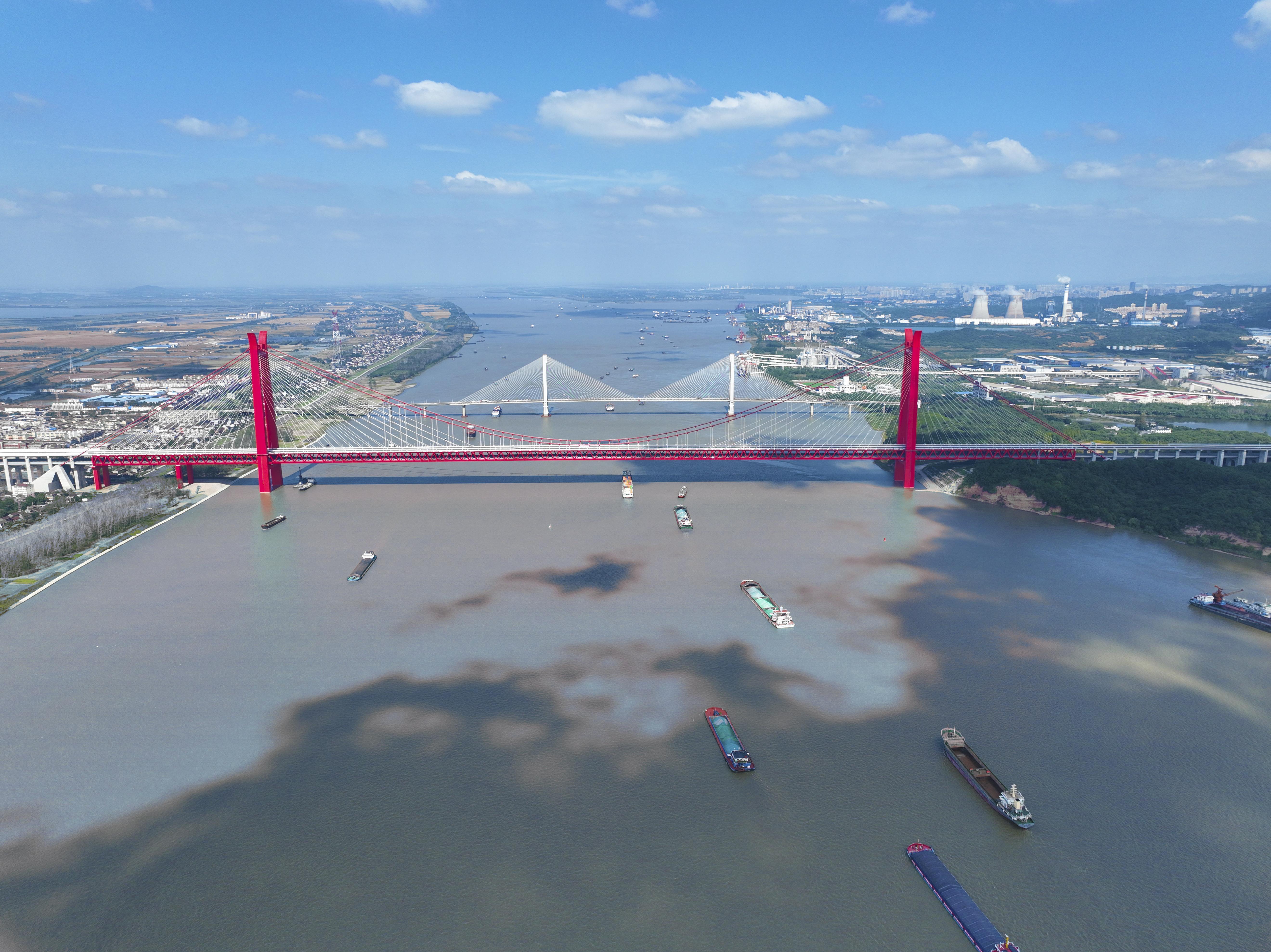 宋海涛表示,该体系既有效利用了悬索桥“一跨过江”的优点,将通航影响降至最低,又有效利用了斜拉桥承重强的优势,把主塔建在岸边,避开防洪堤坝,保障了防洪安全。