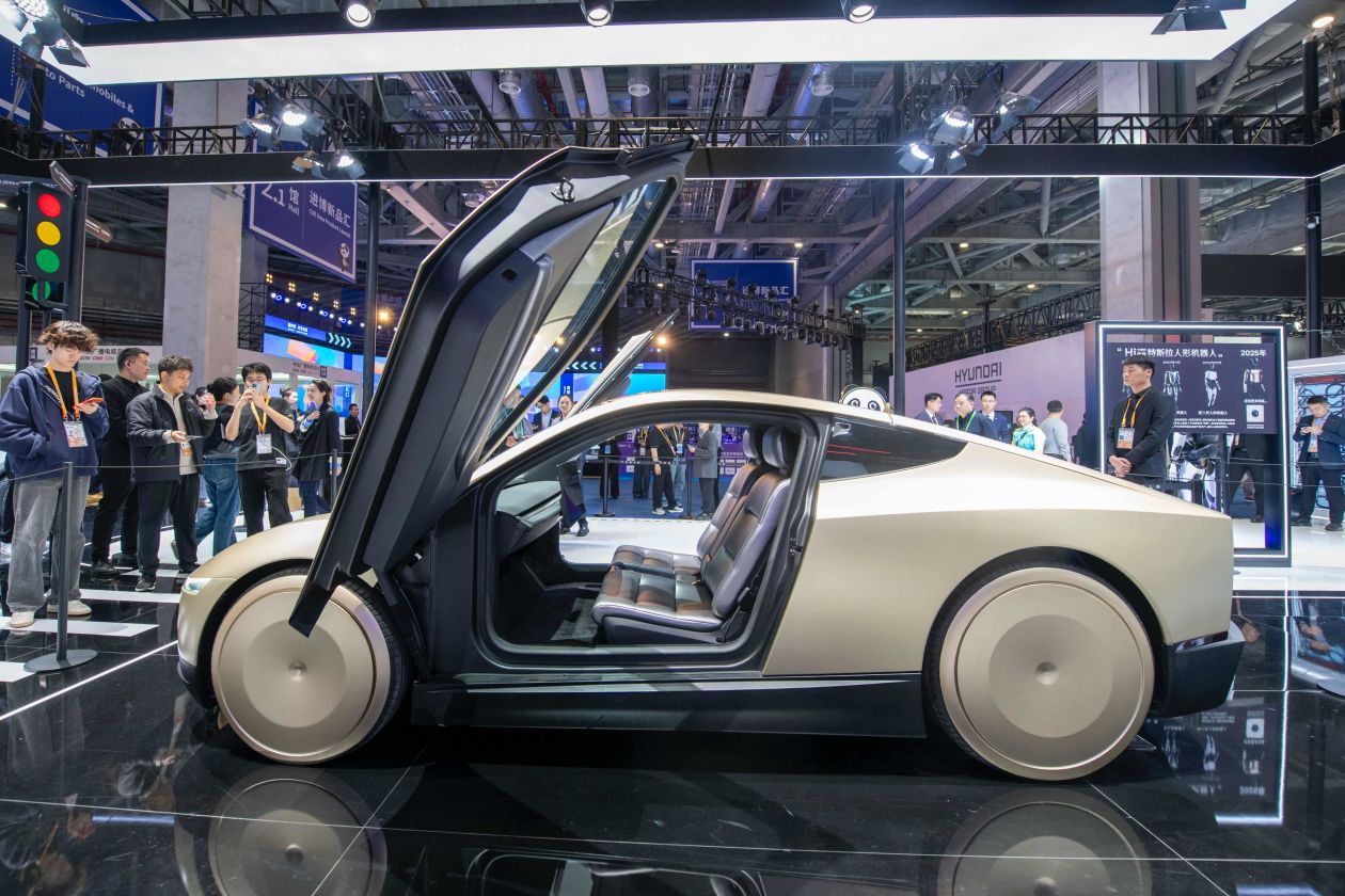 在第八届进博会汽车及智慧出行展区,没有方向盘和踏板的特斯拉Cybercab无人驾驶电动车迎来亚太首秀。人民网记者 翁奇羽摄