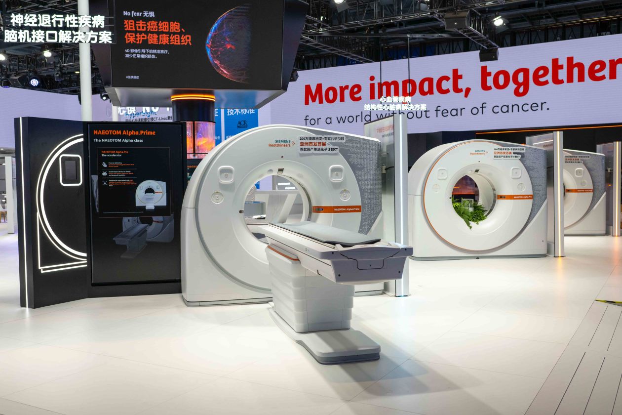 在第八届进博会医疗器械及医药保健展区,西门子医疗展出的亚洲首发首展CT机。人民网记者 翁奇羽摄