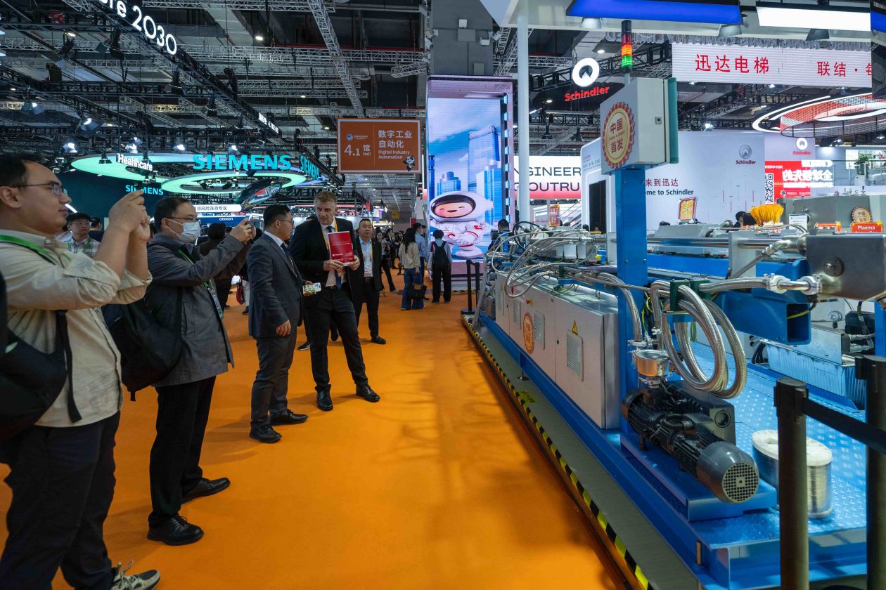 在第八届进博会技术装备展区,一款中国首发用于有色金属表面处理的等离子退火设备吸引参观者驻足拍摄。人民网记者 翁奇羽摄