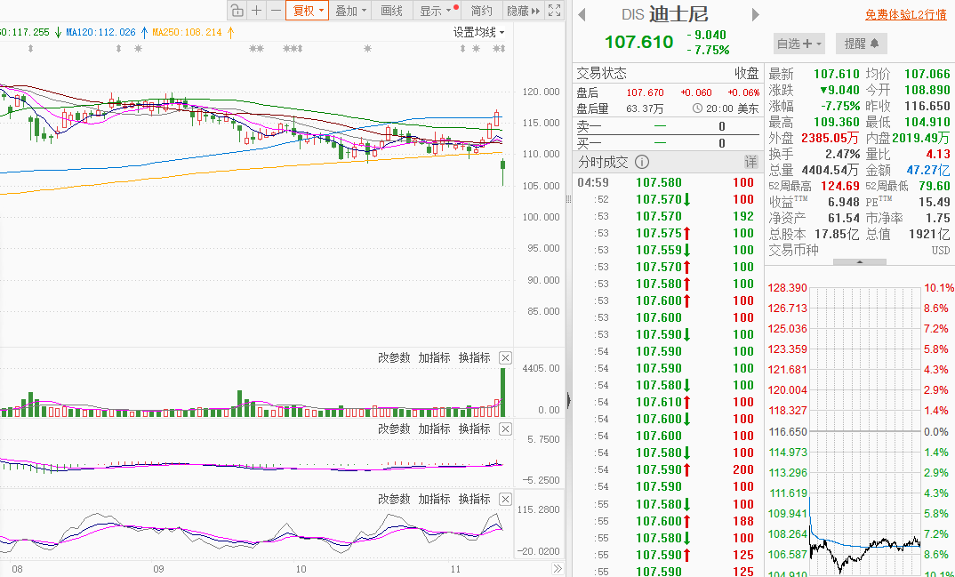 【环球网消费综合报道】华特迪士尼公司于11月13日发布了2025财年第四季度及全年财务报告。数据显示,得益于成本控制见效,迪士尼2025财年归母净利润同比增长149%,达到124.04亿美元。然而,公司收入增长相对温和,全年收入约944.25亿美元,同比增长约3%。这份喜忧参半的财报发布后,迪士尼股价在当日下跌7.75%,反映出市场对其未来前景的复杂心态。
