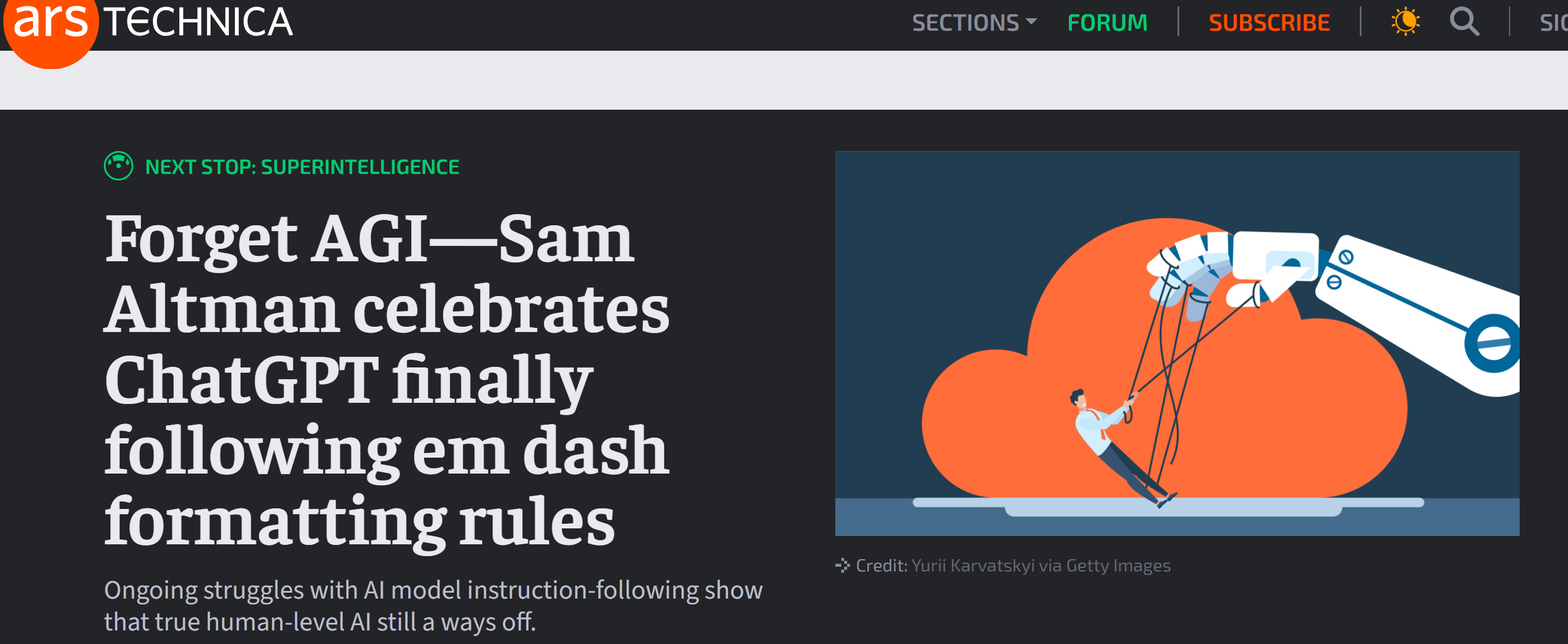 长破折号作为传统常用标点符号,早于大型语言模型(LLMs)诞生前便广泛应用,但在AI生成文本中,其在学术论文、电子邮件、社交媒体帖子、广告文案等各类场景中频繁出现,形成了令人反感的滥用现象。此前,即便用户在提示词中明确要求避免使用长破折号,ChatGPT也难以精准执行,相关问题在OpenAI社区论坛引发广泛讨论,成为困扰用户和平台的一大难题。