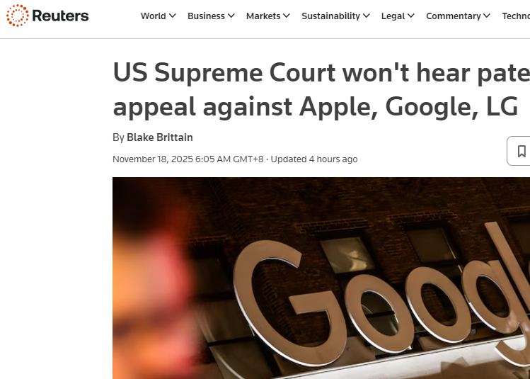 路透社报道称,该起案件源于2021年,手势技术伙伴公司起诉三家企业侵犯其一项手机相机相关专利。该专利于2020年到期,原告主张被告在专利有效期内侵权,且专利生效期间有效性未受质疑。不过,三家公司随后向美国专利商标局专利审判和上诉委员会(PTAB)申请宣告专利无效,该委员会取消了专利大部分权利要求,联邦巡回上诉法院今年 1月进一步宣告整个专利无效。
