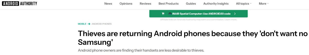 根据伦敦中心博客描述,32岁的伦敦居民萨姆日前被八人团伙抢走随身物品,其中一人随后折返,将三星Galaxy手机塞回他手中,理由是“没人愿意要三星”。同样遭遇的还有马克,他的Galaxy手机被骑车窃贼夺走后随即扔回地面。