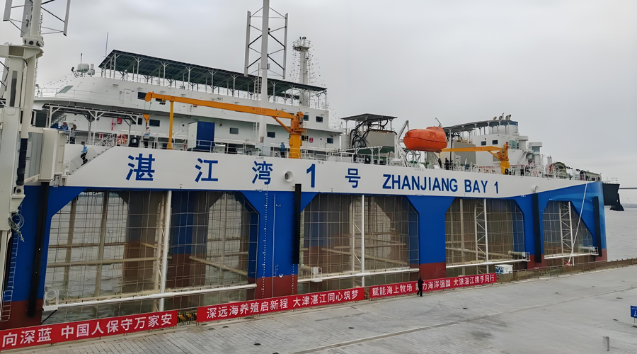 中新社发 谢剑锋 摄 11月19日,全球首型深远海智能渔业养殖工船“湛江湾1号”在广东湛江交付投产。
