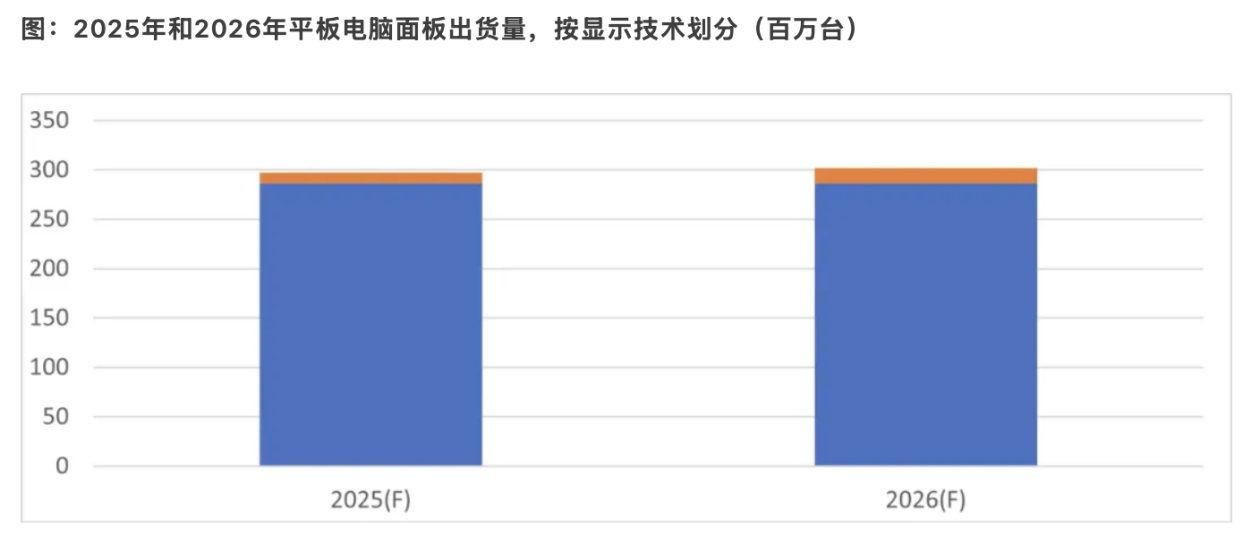 分析称,从2026年整体市场来看,供应链厂商的初步反馈显示,平板面板出货量将同比增长 1.4%,达到3.015亿片。按技术类别分,LCD平板面板出货量预计为2.864亿片,与去年大致持平。中国面板厂商在国内客户带动下仍预期增长;而主要面向苹果或全球平板品牌的面板供应商,则因2025年出货基数过高,对2026年预期更加谨慎。