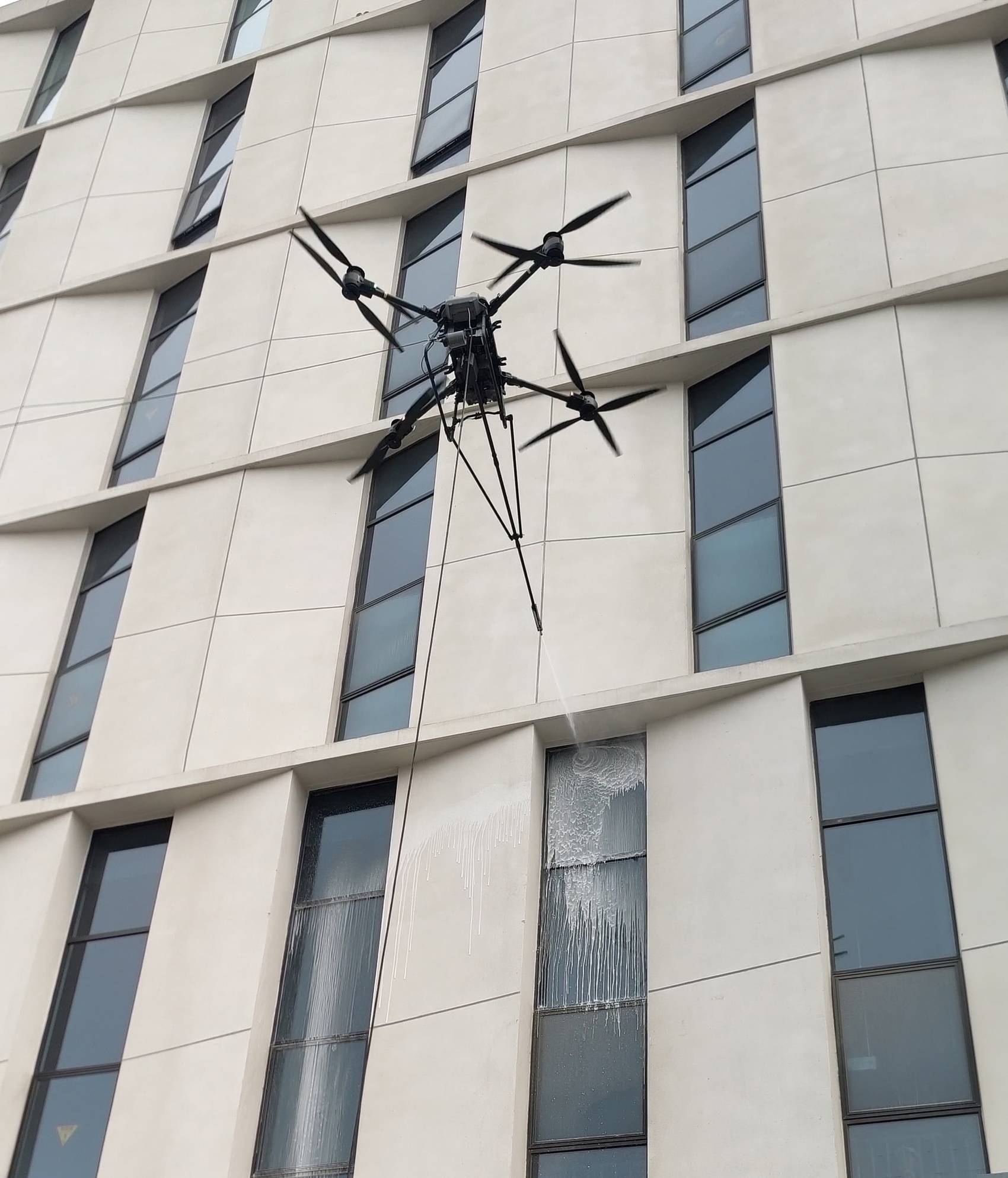 过去,这项工作主要依靠“蜘蛛人”——他们悬坐在与绳索相连的木板上,完成高空清洗。但这种传统作业方式,面临着高风险、高成本与劳动力短缺“三座大山”。如今,一种替代方案正悄然兴起:让无人机上场。