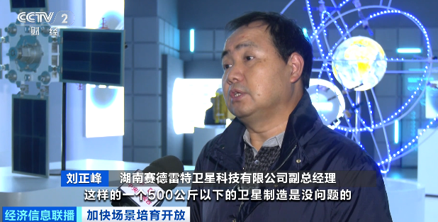 湖南赛德雷特卫星科技有限公司副总经理 刘正峰:我们可以满足一年产能100颗到150颗500公斤以下的卫星制造。应用领域很广泛,包括遥感、通信、深空探测都可以实现。