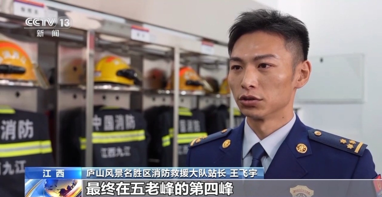 庐山风景名胜区消防救援大队 站长 王飞宇:我们马上用无人机到处寻找,最终在五老峰当中的第四峰,海拔1200多米的悬崖处发现了这几名被困人员,整个悬崖几乎是垂直的,他们就蜷缩在悬崖缝隙里,稍有不慎就可能坠崖,特别危险。