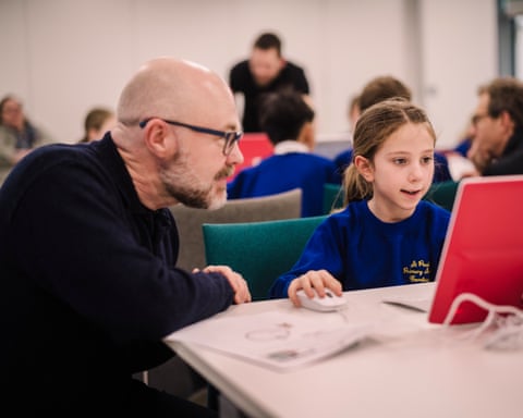 孩子们正在参加一个编程与人工智能课外俱乐部。图片来源:《卫报》,摄影:莎拉·李(Sarah Lee)