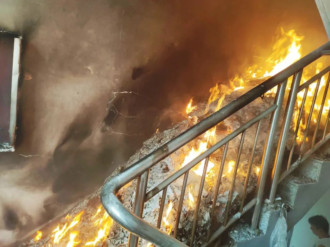 2025年7月,江西宜春一居民楼楼道突发火灾,浓烟滚滚,经查,起火物为楼道口堆积的废旧纸箱,塑料等杂物。