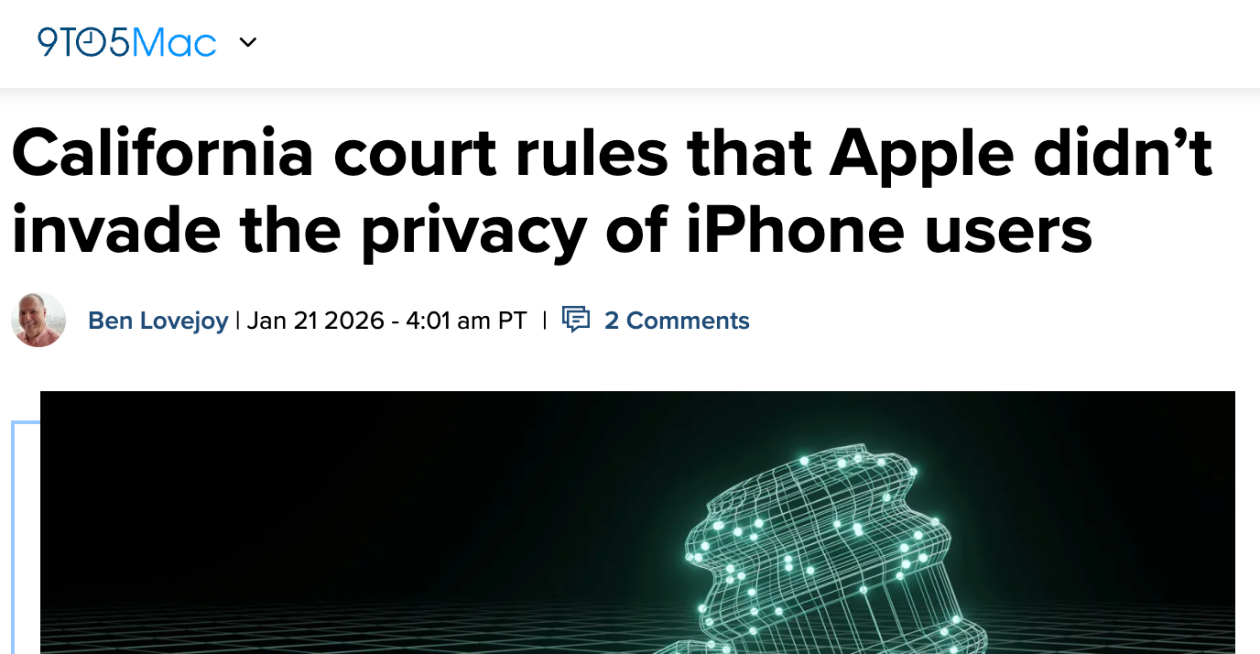 据悉,该案件围绕苹果是否侵犯用户隐私展开,核心争议在于原告指控苹果违反《加州隐私入侵法》(CIPA),在未获用户明确同意时非法收集 iPhone 用户详细使用数据。