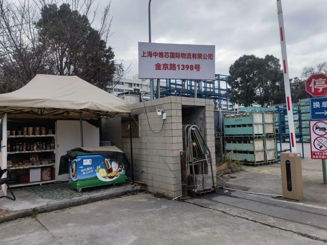 ▶金京路1398号实际为一家“上海中唯芯国际物流有限公司”,厂区有大门和门卫,门口保安透露“公司在这里已经很多年”。