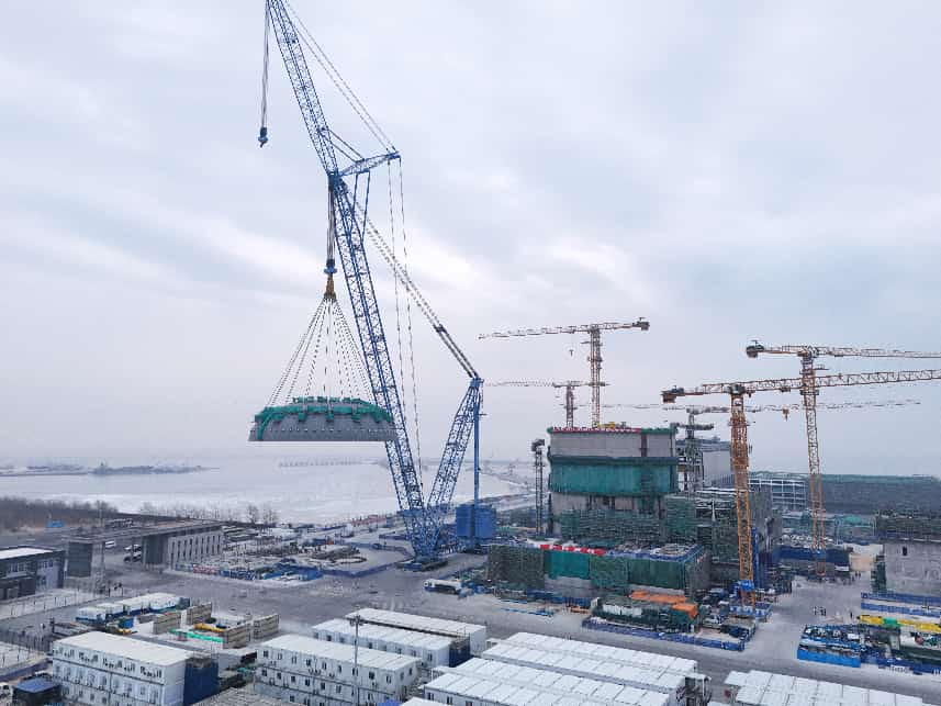 2月10日上午,820余吨重的核岛钢制安全壳顶封头吊装作业开始。中核辽宁核电有限公司供图