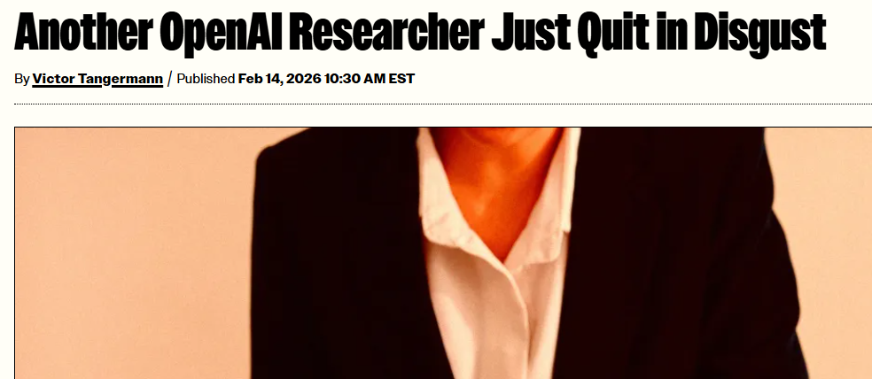 【环球网科技综合报道】2月15日,据外媒Futurism报道,近日,OpenAI再迎核心人才流失,研究员佐伊·希齐格因不满公司新增广告策略,在《纽约时报》撰文宣布辞职,这也是该公司一年内多起高调离职事件中的最新一起。与此同时,Anthropic、xAI两大竞争对手也接连出现人才出走情况,三大AI巨头集体陷入人才流失困境。