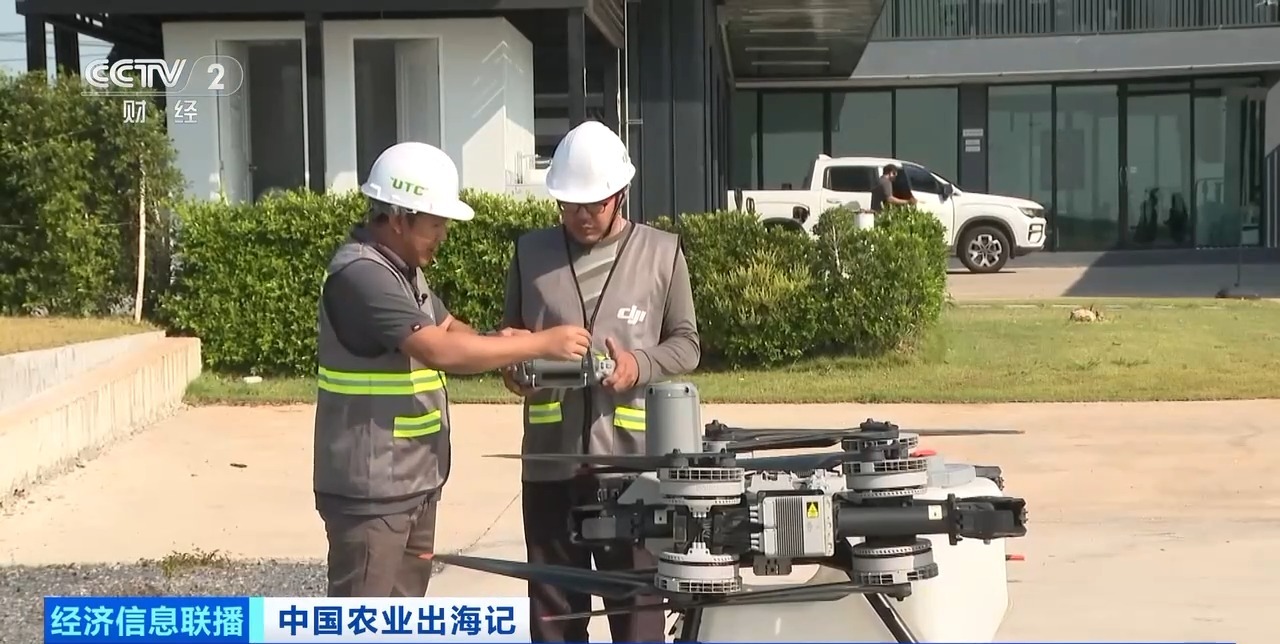 泰国巴真府大型农田项目负责人 布里查:中国农业无人机用下来发现又快又准,而且不会漏喷,几乎是全面覆盖、喷得很细的方式。如果是人工的话,根本没办法知道喷药是不是均匀。