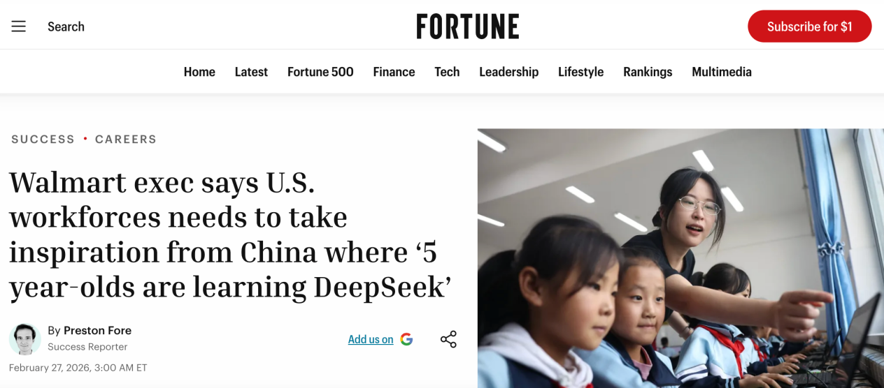 【环球网科技综合报道】3月1日消息,据fortune报道称,面对人工智能(AI)技术对劳动力市场的快速重塑,沃尔玛首席人力资源官唐娜·莫里斯近日公开强调,美国必须加快人工智能教育与技能培训步伐,并指出中国在AI基础教育方面的投入已远超美国。