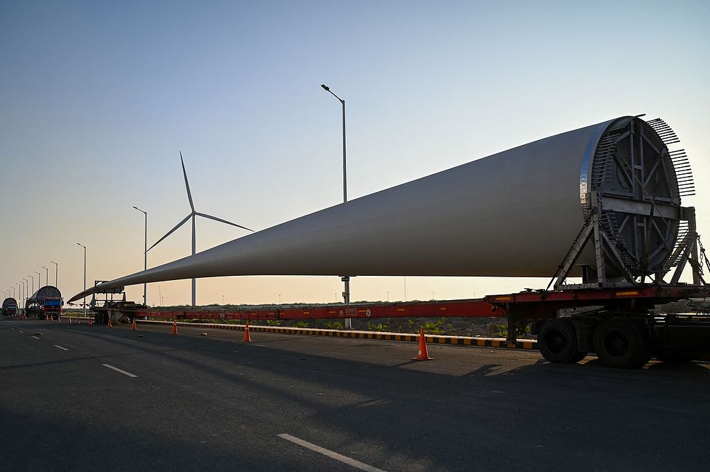 印度阿达尼集团生产的风力发电机叶片。(视觉中国)