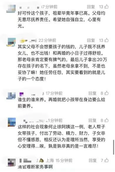 不过,徐阿姨认为,家庭财产分配与梁先生未尽抚养义务,向其索要抚养孙女的相应费用是两码事。