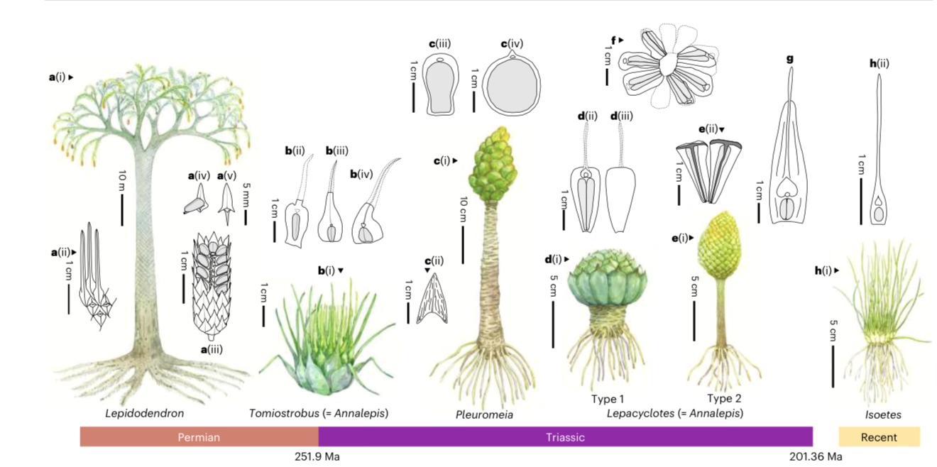 英国利兹大学地球与环境学院和中国地质大学科学家仔细分析了中国西南部地区的285件石松类植物化石,并结合文献记载的200件化石资料,将它们与现存及化石近亲进行对比。结果发现,这些二叠纪—三叠纪的石松类植物,与今天一种非常小巧、常生活在水边或湿地的植物——水韭,有着密切的亲缘关系。