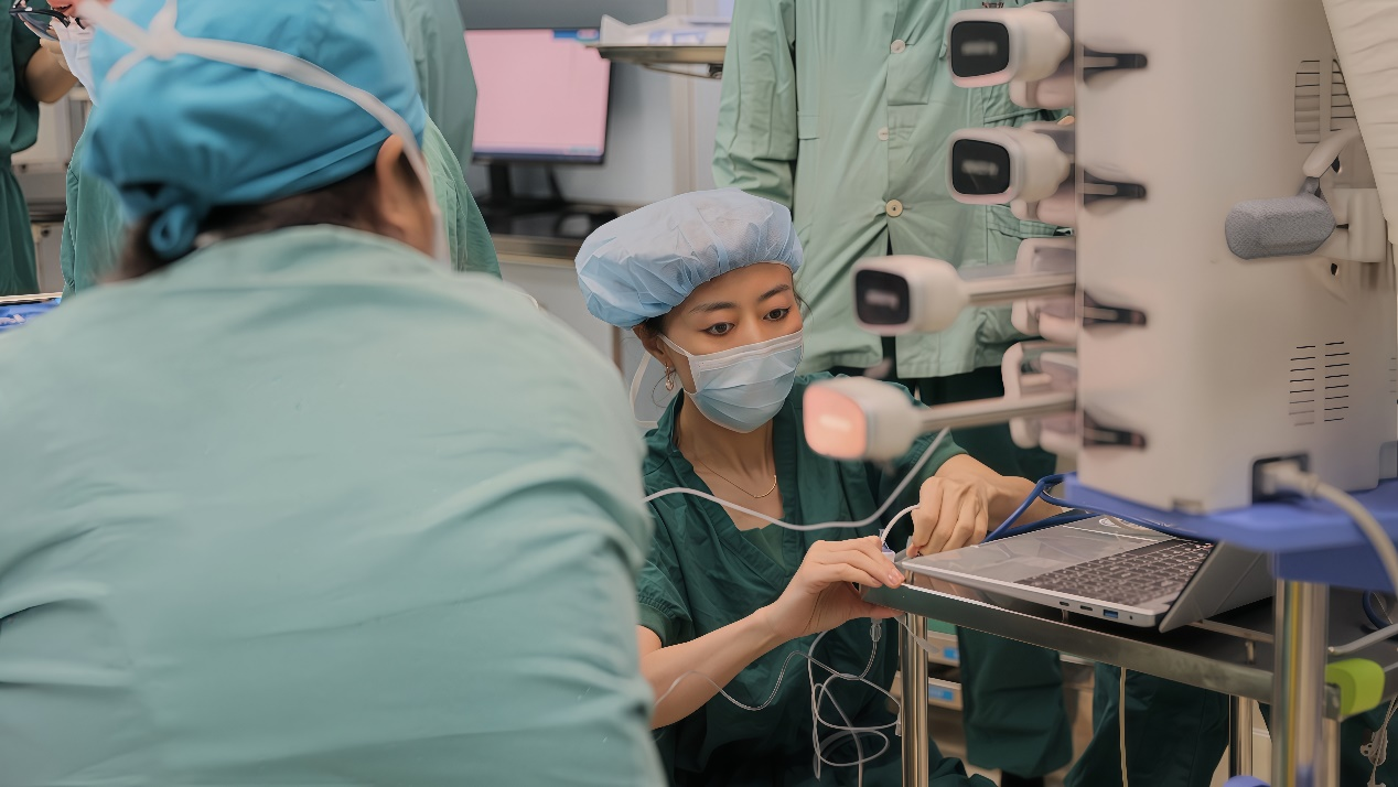 天津大学科研人员在天津市环湖医院参与诊断。天津电视台供图