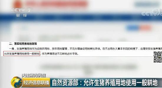 自然资源部:允许生猪养殖用地使用一般耕地