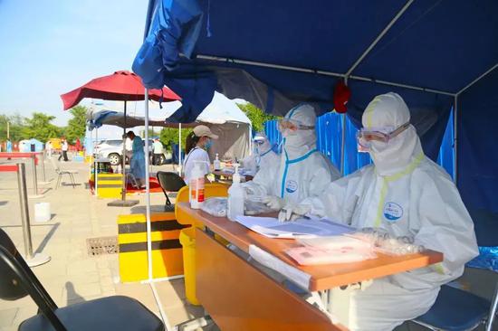 上地街道为核酸检测点的医务人员