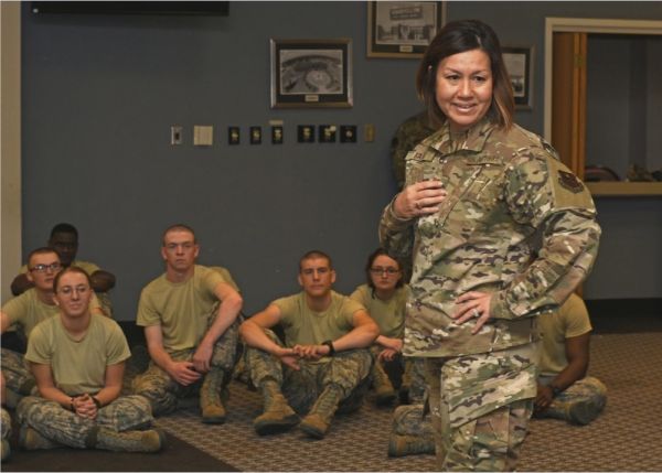 巴斯(站立者)在与美空军士兵进行交流(美国空军网站)