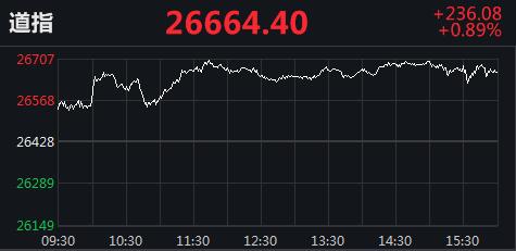 截至收盘,道指涨236.08点,涨幅0.89%,报26664.40点;纳指涨157.52点,涨幅1.47%,报10902.80点;标普500指数涨23.49点,涨幅0.72%,报3294.61点。