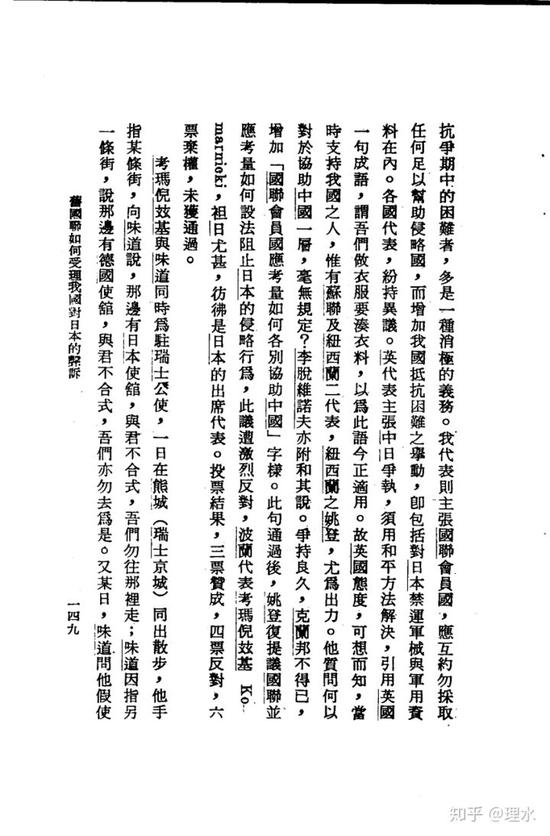 纽西兰之姚登,尤为出力。他质问何以对于协助中国一层,毫无规定?李脱维诺夫亦附和其说。争持良久,克兰邦不得已,增加“国联会员国应考量如何各别协助中国”字样。此句通过后,姚登复提议国联并应考量如何设法阻止日本的侵略行为,此议遭激烈反对,波兰代表考玛倪茨基,袒日尤甚,仿佛是日本派出的代表。