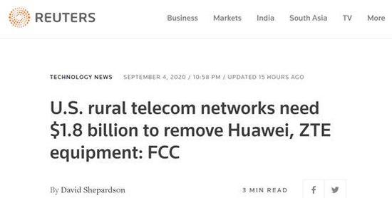 美国联邦通讯委员会:想移除华为中兴设备,美国农村电信运营商将耗费18亿美元