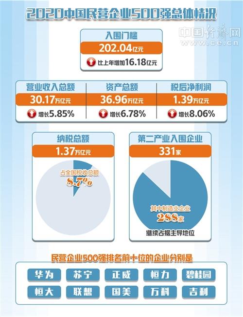 由全国工商联主办的2020中国民营企业500强峰会9月10日在北京举行。会议发布了《2020中国民营企业500强调研分析报告》(以下简称《报告》)及“2020中国民营企业500强”榜单。