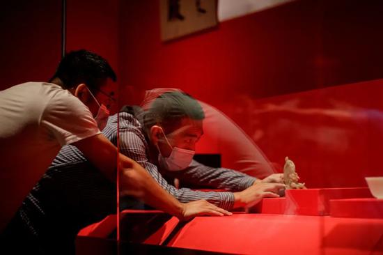 展览开幕在即,布展工作正在紧张而有序地进行。不止是展品,本次展出的每一个细节,都经过了筹展组成员的反复确认和推敲,包括展台的距离、说明牌上的文字以及防止和固定文物时的小心翼翼等。