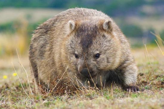 袋熊和它的方形粪便。研究发现,袋熊大肠的肠壁厚度不均,其中有两个地方比较硬,粪便经过时就会被挤压出棱角。